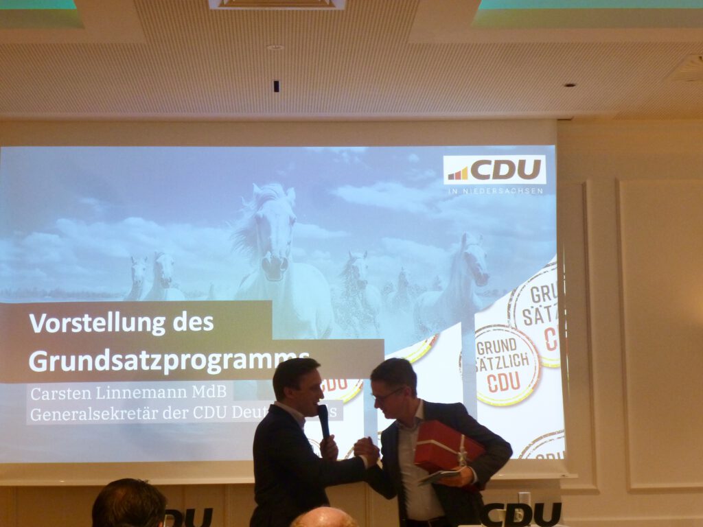 Am 09. und 10.02.24 fand auf Gut Altona die Klausurtagung des Landesvorstandes der CDU-Niedersachsen statt. Neben der Agenda für das Europa-Wahljahr war das Grundsatzprogramm der CDU, welches gerade in Arbeit ist, ein zentrales Thema. Höhepunkt der Tagung war der Besuch von CDU-Generalsekretär Carsten Linnemann MdB, der eine mitreißende Rede hielt. Eine Wohltat, endlich wieder „CDU PUR“ zu hören. Die Bundes-CDU scheint mit Friedrich Merz & Carsten Linnemann ein schlagkräftiges Tandem gefunden zu haben, welches mit Inhalten anstatt mit „reiner Ampel-Kritik“ punkten will. Als OMV-Landesvorsitzender nahm Heiko Schmelzle als kooptiertes Mitglied des CDU-Landesvorstandes an der Klausurtagung teil.