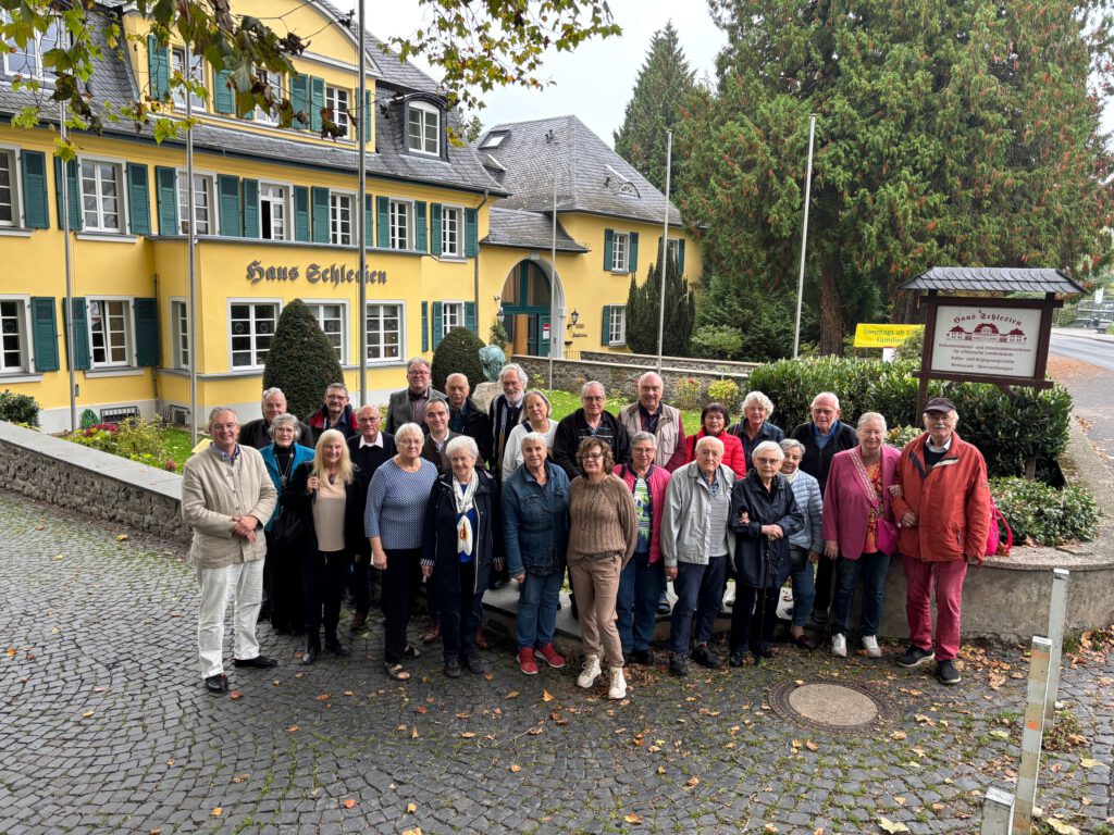 Heiko Schmelzle hat zum zweiten Mal an der Kulturtagung der Landsmannschaft Schlesien auf Bundesebene teilgenommen. In diesem Jahr war er sogar als Referent angefordert worden, um über die Autobiografie der Fürstin Daisy von Pless zu referieren. Hierfür hatte er das Werk „Tanz auf dem Vulkan“ (welches einem Tagebuch gleicht) intensiv durchgearbeitet und nach Rubriken zusammengefasst. Für die Ausarbeitung war ihm die von Peter Winkler geführte Schlesien-Reise im Sommer 2025 eine große Hilfe, weil auf dieser Fahrt auch die Schlösser in Fürstenstein und Pless besucht wurden, wo er sich noch weitere Hintergrundinformationen für das Referat besorgen konnte. Auch das ein oder andere Foto von der Fahrt fand den Weg in seinen Vortrag.