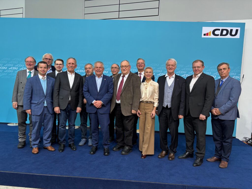 Der Bundesvorstand der UdVA  hat sich im Konrad-Adenauer-Haus in Berlin mit dem Vorsitzenden der Gruppe der Vertriebenen, Aussiedler und deutschen Minderheiten der CDU/CSU-Fraktion im Deutschen Bundestag zu einem Gedankenaustausch getroffen. Klaus-Peter Willsch ist gerade für die Themen, die die UdVA betreffen der zuständige Haushälter im Bundestag. Er ist Berichterstatter für den Haushalt des Ministeriums des Inneren, wo die Zuständigkeiten für unsere Themen durch die neue unionsgeführte Bundesregierung im Rahmen eines Verwaltungserlasses gebündelt wurden. Heiko Schmelzle und die anderen Gremiumsmitglieder baten ihn um Unterstützung einiger Projekte aus unserem Themengebiet, die es bislang noch nicht in den Haushaltsplan für das Jahr 2026 geschafft haben. Er sagte zu, in der entsprechenden Bereinigungssitzung des Haushaltsausschusses am 14.11.2026 entsprechend wachsam zu sein.